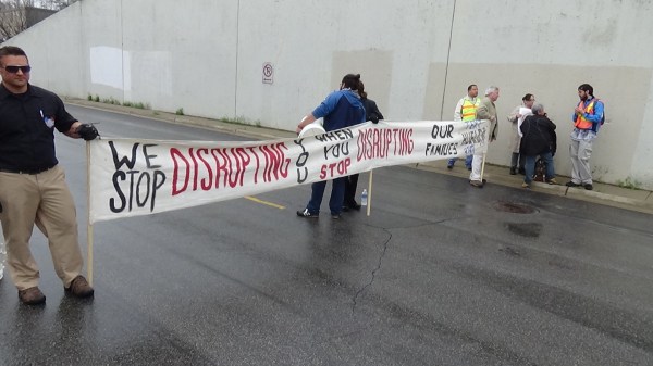Once the march arrived at the ICE office, the three people who were carrying a banner blocked Ottawa street to further demonstrate their opposition to the targeting of people who are undocumented by ICE agents.