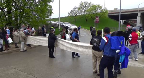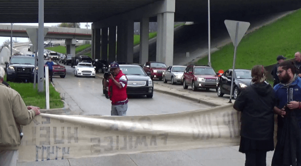 The GRPD arrived shortly after people were blocking the road, but after a brief conversation with the organizers, it was made clear that the police were not going to arrest anyone. Those who organized the action then spent some time discussing amongst themselves what plan of action they would take next. It was then decided that people would walk back towards Michigan St on Ottawa, just beyond where both the eastbound and westbound exits off of 196 are.