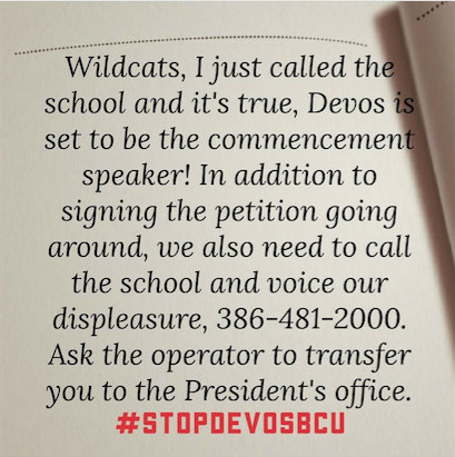 Students, alumni and community groups fight to prevent Betsy DeVos from giving a commencement address next week at an historically black university