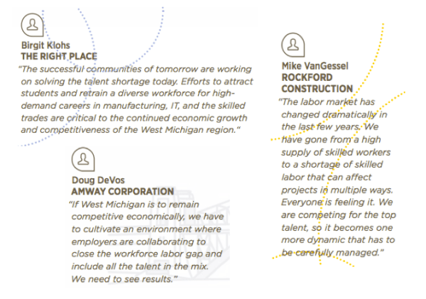 The talent management group Talent 2025 has identified these three goals (on the right) for West Michigan, if the economy is to grow.