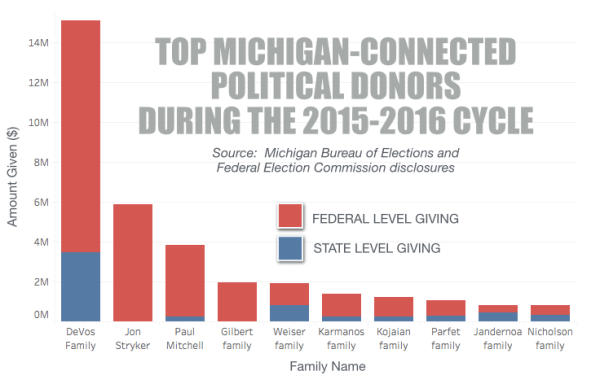 The DeVos Family spends millions of dollars on every election cycle, just like they during during the 2015 – 2016 election cycle, as has been well documented by the Lansing-based organization, the Michigan Campaign Finance Network.