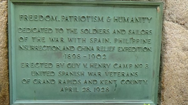 However, maybe a good place to start would be to look at the statue that resides in the little pocket park located at the intersection of Cherry, State and Madison streets. The statue is of a generic US soldier who fought in what is generally identified as the Spanish American Wars.