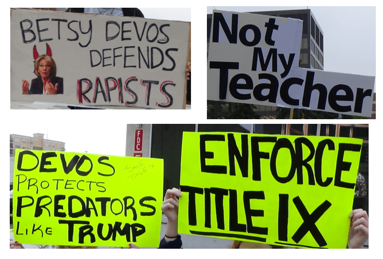 Those attending the MSU ribbon-cutting ceremony were greeted by anti-Betsy DeVos protestors in Grand Rapids