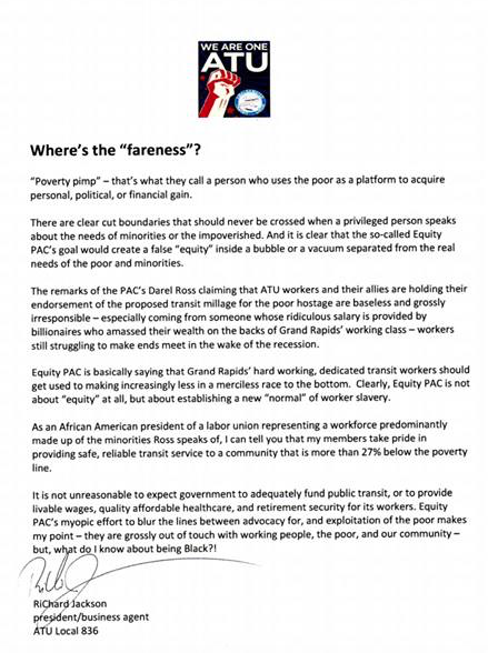 Grand Rapids Bus Driver’s Union and Equity PAC trade words over November Transit Millage