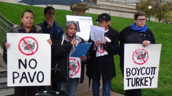 Last night, in front of the downtown branch of the Grand Rapids Library, the Grand Rapids chapter of Movimiento Cosecha kicked off its campaign to boycott Turkey and turkey products through the rest of the year.