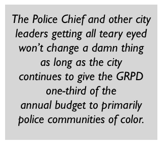 Chief Rahinsky gets nauseated, but defends police violence against the black community in Grand Rapids