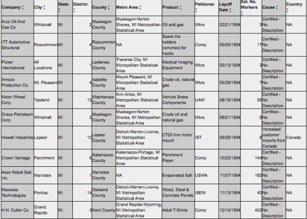 This information clearly is in contrast to the claims made by Birgit Klohs. Public Citizen, even provides a detailed look at what they refer to as the Trade Adjustment Assistance Database, where you can look at all the jobs lost due to NAFTA, based on company, the year and how many workers were laid off. There are pages and pages of job layoffs, when looking at the database. Here is a brief sampling from that database.