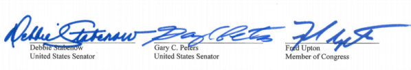 The Michigan Senators and the entire Congressional Delegation from Michigan submitted a letter to Lieutenant General Samuel A. Greaves, who is the director of the Missile Defense Agency, stating:
