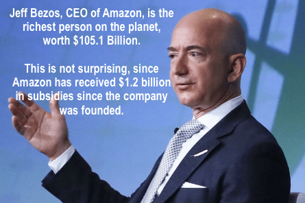 Jeff Bezos, the CEO of Amazon, and now the wealthiest person on the planet, is accustomed to getting tax breaks from the government. According to an article in Slate.com: