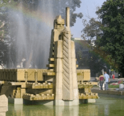 The statue of the Fountain of the Pioneers has attracted attention since a master plan was approved in 2016. The fountain includes a representation of a European settler with a weapon in his hand towering over a Native American.