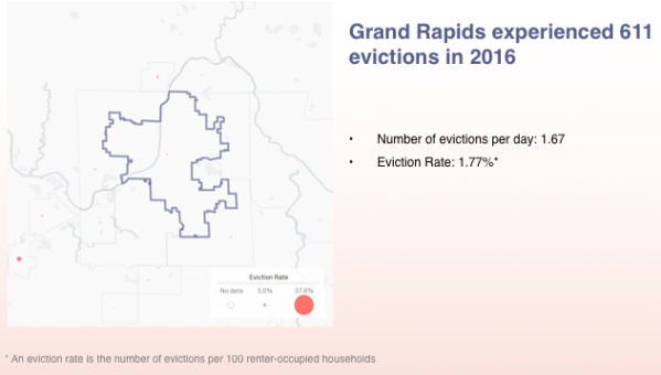 Now, data doesn’t give us the whole picture, since we don’t know how many people these 611 evictions in Grand Rapids impacted in 2016. The data also does not adequately communicate the harm and humiliation that those being evicted must endure.
