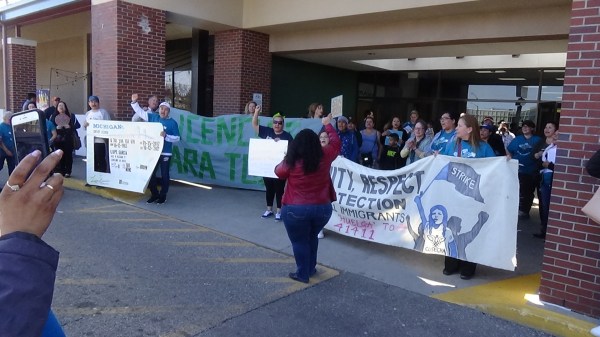 Lastly, it is important to message how the local police departments responded to the Cosecha GR action. First, while organizers were at their community space, a GRPD cruiser was parked outside while the organizers were preparing for the action. Secondly, the Wyoming Police Department had cops at the Roger’s Plaza the whole time that the Cosecha GR action took place, ever while people were arriving. Third, the GRPD then showed up at Roger’s Plaza and several people said that both the GRPD and the Wyoming PD were asking people about the route of the May 1st march who the leaders were that they could talk to. This attempt to glean information from people showed that the police are worried about the march and even more worried that they will not be in complete control of what those marching will do.