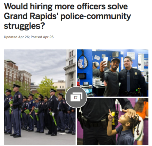 The very next day, the same MLive reporter wrote a follow-up article, entitled, Would hiring more officers solve Grand Rapids’ police-community struggles?