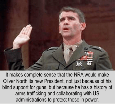 Known Weapons Trafficker, Oliver North will now lead the National Rifle Association