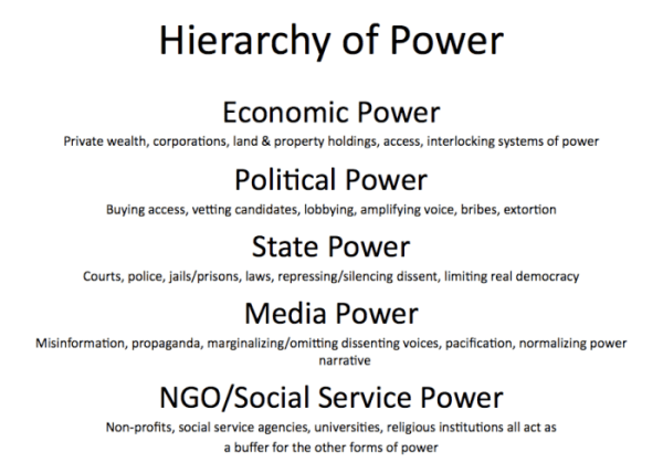 On last way that those who dissent against the local power structure are attacked is the reality of living within a system of neo-liberal capitalism. Those who dissent, organize and protest the local power structure are themselves are barely able to support themselves. Whether it is the reality of student debt, poverty, the cost of housing and health care, the majority of the population in Kent County is one paycheck away from being evicted or foreclosing on their mortgage. Neo-Liberal capitalism is so debilitating, that those who are dissenting are often in crisis because the economic system – the same system that benefits the Grand Rapids Power Structure – punishes them for dissenting. Indeed, even those who don’t dissent, can clearly see that if they chose to dissent, a similar fate will await them if they get out of line and chose to challenge power.