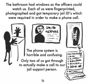 process, being booked into the Kent County Jail, the jail food, the legally required phone call, the visit with the nurse and the bonding out process, along with the amazing support that was offered to those who chose to participate in the direct action.