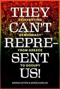 In Marina Sitrin and David Azzellini demonstrate in their important book, They Can’t Represent Us!: Reinventing Democracy From Greece To Occupy, liberal democracy is actually a barrier to full public participation in the ongoing developments in society. Too often, people of good will accept the notion that representative democracy is the best that we can do and if we just get enough people to vote for “our candidates” then things will be just fine.