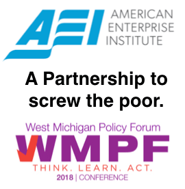 The American Enterprise Institute has nothing but contempt for the poor and has demonstrated during its history that their allegiance is to those in the Capitalist class. This is exactly why the DeVos family has contribute millions to AEI over the years and it is exactly why the West Michigan Policy Forum brought him to Grand Rapids for their conference.
