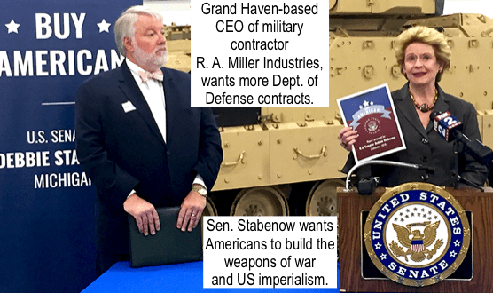 Lastly, it is worth noting that like all US politicians at the federal level, Senator Stabenow has a commitment to neoliberal capitalism and US Imperialism. More profits for weapons profiteers and more weapons for the larger global US imperial project.