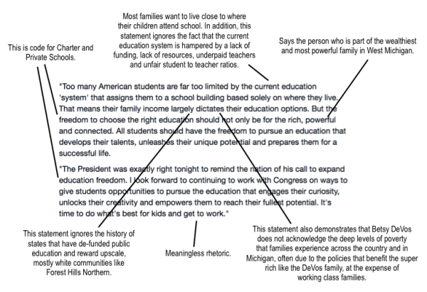 We decided this would be a useful opportunity to do a simply deconstruction of what Betsy DeVos had to say, which you will find here below.