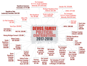 We also know that the DeVos family funded politicians have voted to legally allow adoption agencies to prohibit same-sex partners from adopting, plus the same politicians passed legislation to allow for increased campaign contributions to candidates running for office in Michigan.