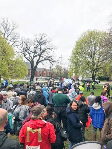Despite the weather and despite the levels of state violence that the immigrant community has endured, there was no indication that those who were slowly gathering at Garfield Park would be anything but intimidated by the threats of arrest. Movimiento Cosecha GR organizers and volunteers did an amazing job preparing for this march, making connections with people and following the lead of those in the community who have told them over and over again that the ability to obtain a drivers license would be a huge win.