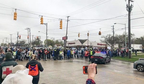 As we moved along the road to our final destination, we passed the Wyoming Police Department, which now included GRPD and Michigan State cops in such large numbers that would have thought there was a police convention being held that day. However, no amount of police presence, nor the threat of arrest, was ever going to dampen the spirits of those marching.