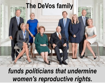 One of the largest single political donors to those who voted to reduce women’s reproductive rights in Michigan, is the DeVos Family