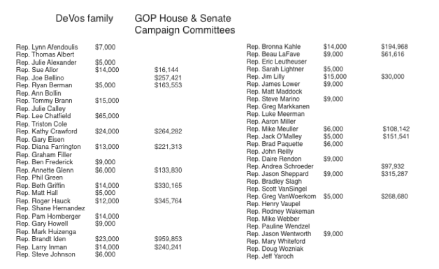 One of the largest single political donors to those who voted to reduce women’s reproductive rights in Michigan, is the DeVos Family