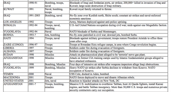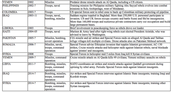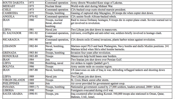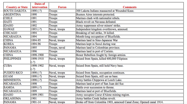 What follows is what Grossman has documented, which you comes from this link. While this list does not provide many details, it does demonstrate that US militarism and US imperialism has always been an integral part of US history. Millions of people have been murdered during this history, millions more displaced, yet it is history that gets put down the memory hole by politicians and pundits alike. Let us not forget this history and let us all re-member!