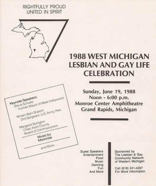 Some people wore bags on their heads at the first Pride in Grand Rapids: Resisting the homophobic, transphobic and heterosexist culture of West Michigan Nice