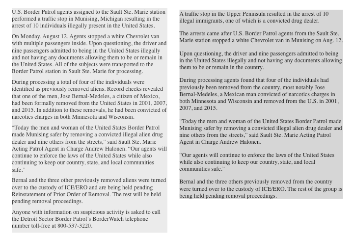 Perpetuating Misinformation: MLive article is nothing more than a version of a US Customs and Border Patrol Media Release