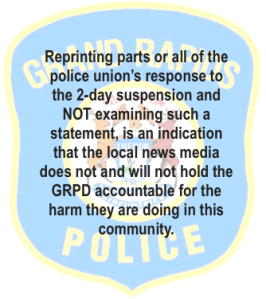 This claim by the Grand Rapids Police Officer’s Association is not only baseless, but it is a deflection from the actual harm done by VanderKooi’s decision to contact ICE on Jilmar Ramos-Gomez. More importantly, reprinting parts or all of the police union’s response to the 2-day suspension and NOT examining such a statement, is an indication that the local news media does not and will not hold the GRPD accountable for the harm they are doing in this community.