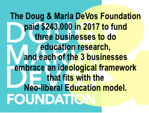 While this is just a snapshot of the three companies that were paid for by the Doug & Maria DeVos Foundation, it demonstrates that they prefer to use their money to fund entities that are antithetical to public schools and public education. The big question is, why does the Grand Rapids Public Schools agree to utilize the paid for resources from the Doug & Maria DeVos Foundation and what does this mean for the future of the GRPS?
