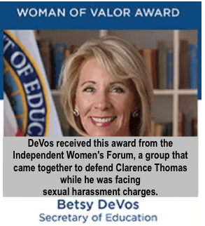 Last month, US Secretary of Education Betsy DeVos received an award from the group known as the Independent Women’s Forum (IWF).