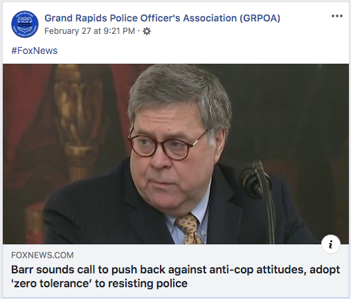 Grand Rapids Police Officers Association uses William Barr’s comments in an attempt to silence critics