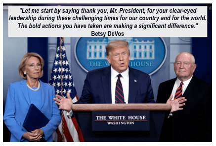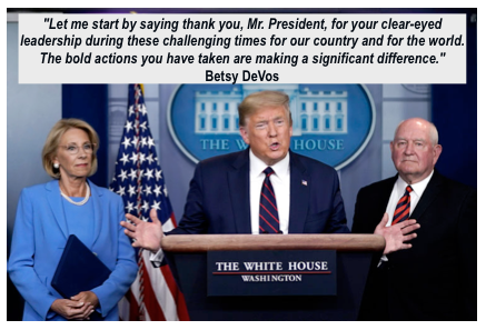 Betsy DeVos thinks Trump is doing a great job responding to the COVID-19 crisis and she is trying to ram through more Neo-Liberal Education policies