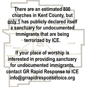 This reality has led the grassroots group, GR Rapid Response to ICE, to begin a campaign to encourage more faith communities to declare themselves as sanctuary. This campaign is centered around the 800 to 1 ratio of churches to sanctuaries in this community.