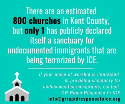 For those interested exploring the possibility of their faith community becoming a sanctuary and what that entails, you can contact GR Rapid Response to ICE at info@grrapidresponsetoice.org or leave a message on their Facebook page.