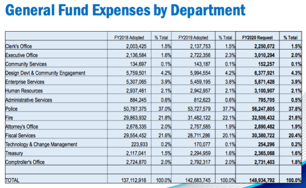 In the chart above, which is from the 2019 Grand Rapids City Budget (2020 is still being decided upon), you can see that the GRPD receives the largest amount of funding of all departments in the City – $53,727,579. The total expenses for 2019 are $142,683,745, thus reflecting that the GRPD uses over a third of the City’s budget.