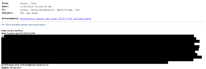 Pages 53-57 – Includes communication between Cosecha GR and the City of Grand Rapids. The question should be asked as to why the GRPD would include this communication?