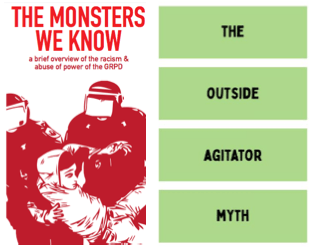 The first zine, entitled, The Monsters We Know: A Brief overview of the racism and abuse of power of the GRPD, is a great 2-page zine that provides a quick overview of some recent cases where the GRPD abused their power, particularly with black and brown people in Grand Rapids. The zine was produced by the West Michigan Anarchist Federation and can be downloaded at this link.