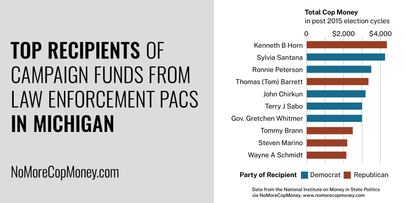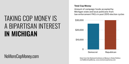 In our initial article on police union funding, we also posted a link to a statewide campaign No More Cop Money, which provides data and research capabilities on which politicians in Michigan have been on the receiving end of contributions from police unions.