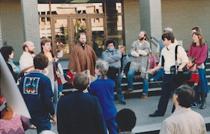 We declared ourselves a Sanctuary in the fall of 1986 on the steps of the Gerald R. Ford Federal building in downtown Grand Rapids, as it was custom to make this kind of a declaration public. Members of the Detroit and Lansing Sanctuaries were present, with Fr. Dick Preston leading a ceremony to honor the public commitment being taken by our community.