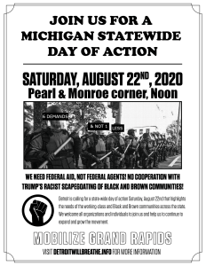 On Saturday, there was a solidarity action in downtown Grand Rapids, which coincided with actions across the state that was initiated by organizers in Detroit called Detroit Will Breathe.