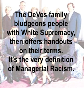 This definition of White Supremacy is the very ideologically driven motivation for the DeVos family’s insertion of millions of dollars in every campaign cycle since the Reagan era, and it is the over-riding factor during the past 4 years of the Trump administration.
