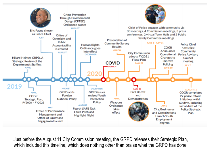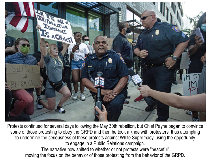 A visual timeline of how the GRPD has tried to control the narrative about public safety since the May 30th rebellion in Grand Rapids