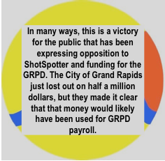 In many ways, this is a victory for the public that has been expressing opposition to ShotSpotter and funding for the GRPD. The City of Grand Rapids just lost out on half a million dollars, but they made it clear that that money would likely have been used for GRPD payroll.