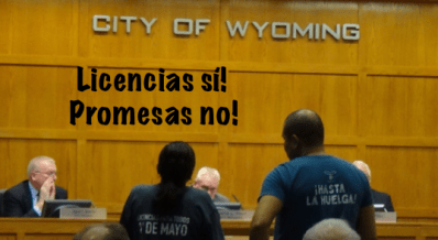 However, Cosecha GR has primarily focused on their Driver’s Licenses for All campaign, which saw them pressuring local governments to support the statewide campaign to pass legislation to once again allow undocumented immigrants to obtain driver’s licenses. We reported on Cosecha GR actions in February at the Wyoming City Commission, which often exposed the deep levels of racism and xenophobia that immigrants face in this community.
