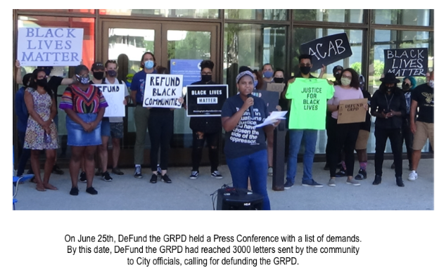 GRIID has devoted over 50 posts since June on the work of these two movements, along with numerous posts that provides analysis of the GRPD budget and how City officials have been trying to undermine the efforts of these movements. What follows are some highlights of this movement work and accompanying analysis: